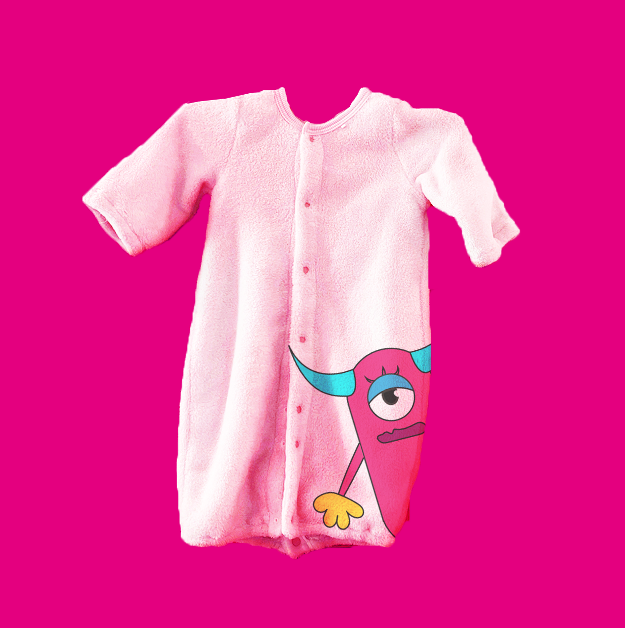 楽しいお出かけやおうち時間にぴったりのパイル生地のベビー服が登場! 着用すると、まるでベビーがモンスターを抱っこしているかのよう?!