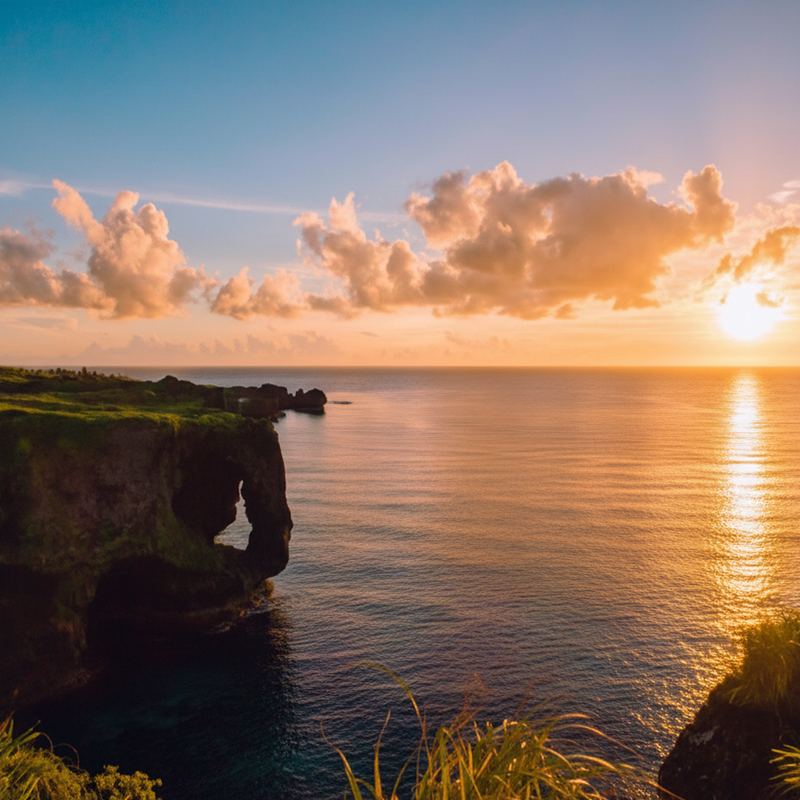 東シナ海に面した、象の鼻のような形をした岩が特徴的な絶景スポット。「万人が座るに足る毛(草原)」という琉球王の言葉が名前の由来です。断崖に打ち寄せる波と、どこまでも広がる水平線が織りなす雄大な景色は、時間を忘れて見入ってしまいます。