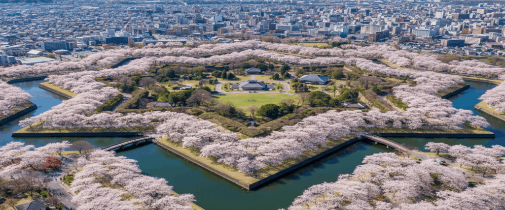 函館市の特別史跡「五稜郭」の美しい星形を、地上約90mの高さから一望できる展望タワー。季節ごとに桜、新緑、紅葉、雪景色と表情を変える五稜郭の姿は、訪れるたびに新たな感動を与えてくれます。幕末の歴史に思いを馳せながら、絶景をお楽しみください。