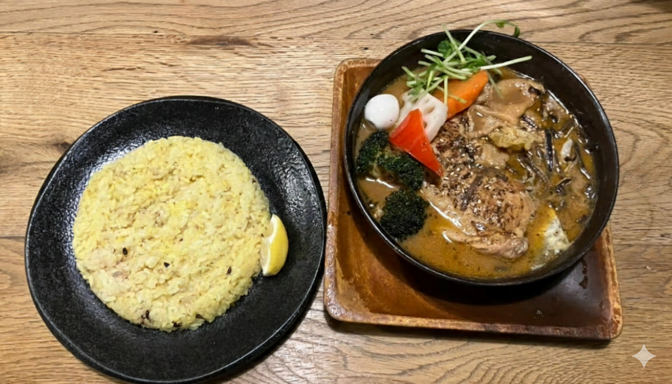 札幌スープカレーの代名詞的存在。20種類以上のスパイスと和風出汁をブレンドした秘伝のスープは、一度食べたら忘れられない奥深い味わいです。ゴロゴロと入った柔らかいチキンや新鮮な野菜と共に、北海道の恵みを存分にお楽しみください。