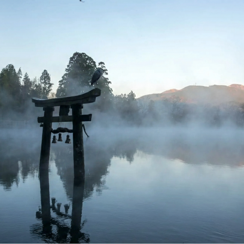 全国的に人気の高い温泉地、由布院。その象徴である金鱗湖は、湖底から温泉と清水が湧き出る神秘的な湖です。秋から冬の早朝には湖面から霧が立ち上る幻想的な風景が広がり、湖畔にはおしゃれなカフェやショップが点在しているため、散策するだけでも楽しめます。