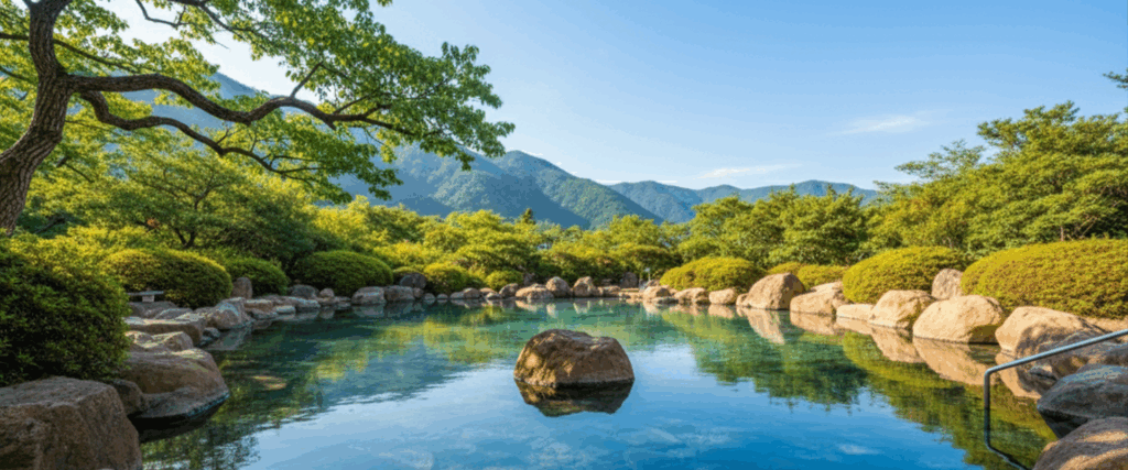 ここの魅力は、なんといっても由布岳を望むことができる圧巻の露天風呂。特に女性専用の「空海の湯」は150畳以上もの広さを誇り、格別の開放感を味わえます。