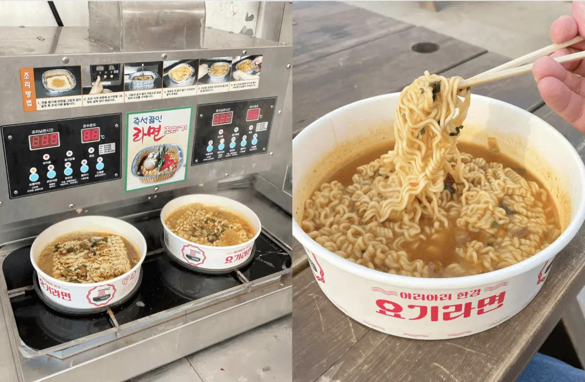 - 好きなカップ麺を選ぶ(辛ラーメン、チャパゲティ、ユッケジャンなど種類豊富)