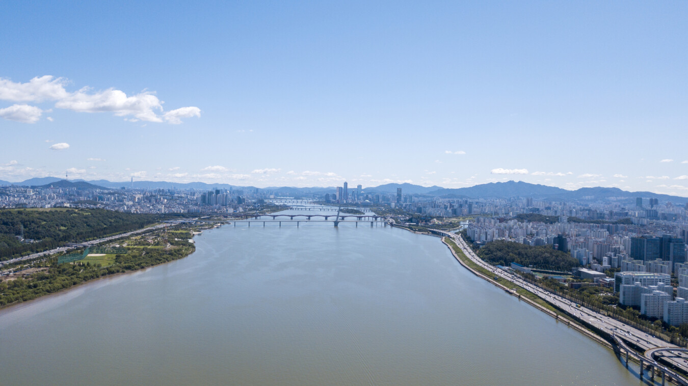 高層ビルが並ぶソウルの中心を、ゆったりと流れる漢江。