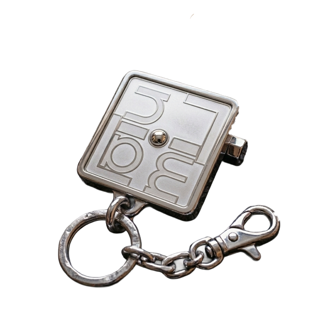 重厚感のあるメタルプレートのオリジナルキーホルダー。光の角度によって刻印の陰影が変化し、異なる表情を見せてくれます。
