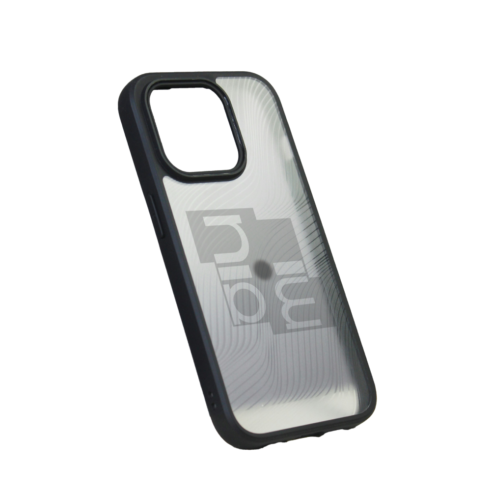 LIMINALロゴ入りスマホケースです。側面には衝撃吸収性に優れたブラックのフレームを採用。デバイスをしっかり保護しつつ、デザイン全体を引き締めるアクセントになっています。